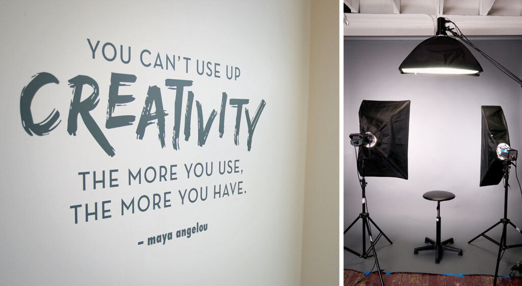 It features an open concept for our designers to collaborate, a photo studio, a conference room with live video conference feed, a kitchen, a zen garden, and even a quiet room when you need a little peace and alone time! We’d love for you to come visit.